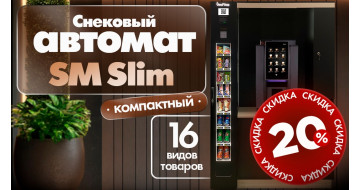 SM SLIM по специальной цене – 169 840 рублей –  только до 9 ноября! Дарим скидку 20% на компактный торговый автомат SM SLIM. SM SLIM станет отличным дополнением к кофейне самообслуживания или мо...